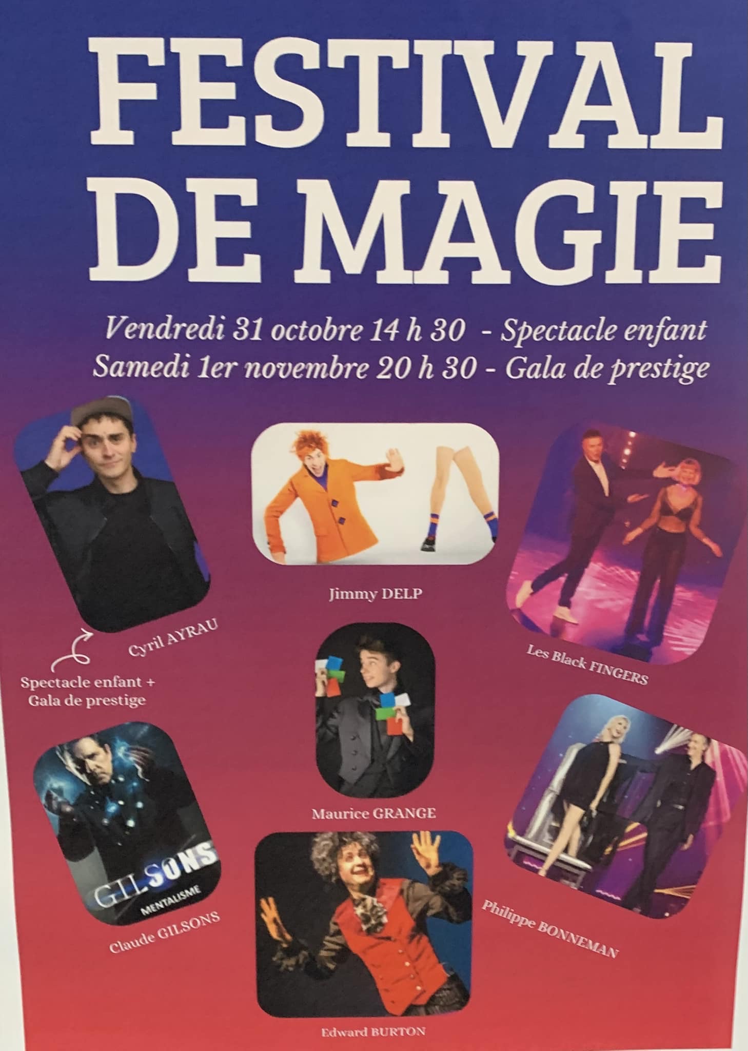 – Le vendredi 31 octobre : un spectacle jeune public « Magic Kids », conçu spécialement pour les enfants de 3 à 11 ans, mêlant humour, rire, poésie et illusion.