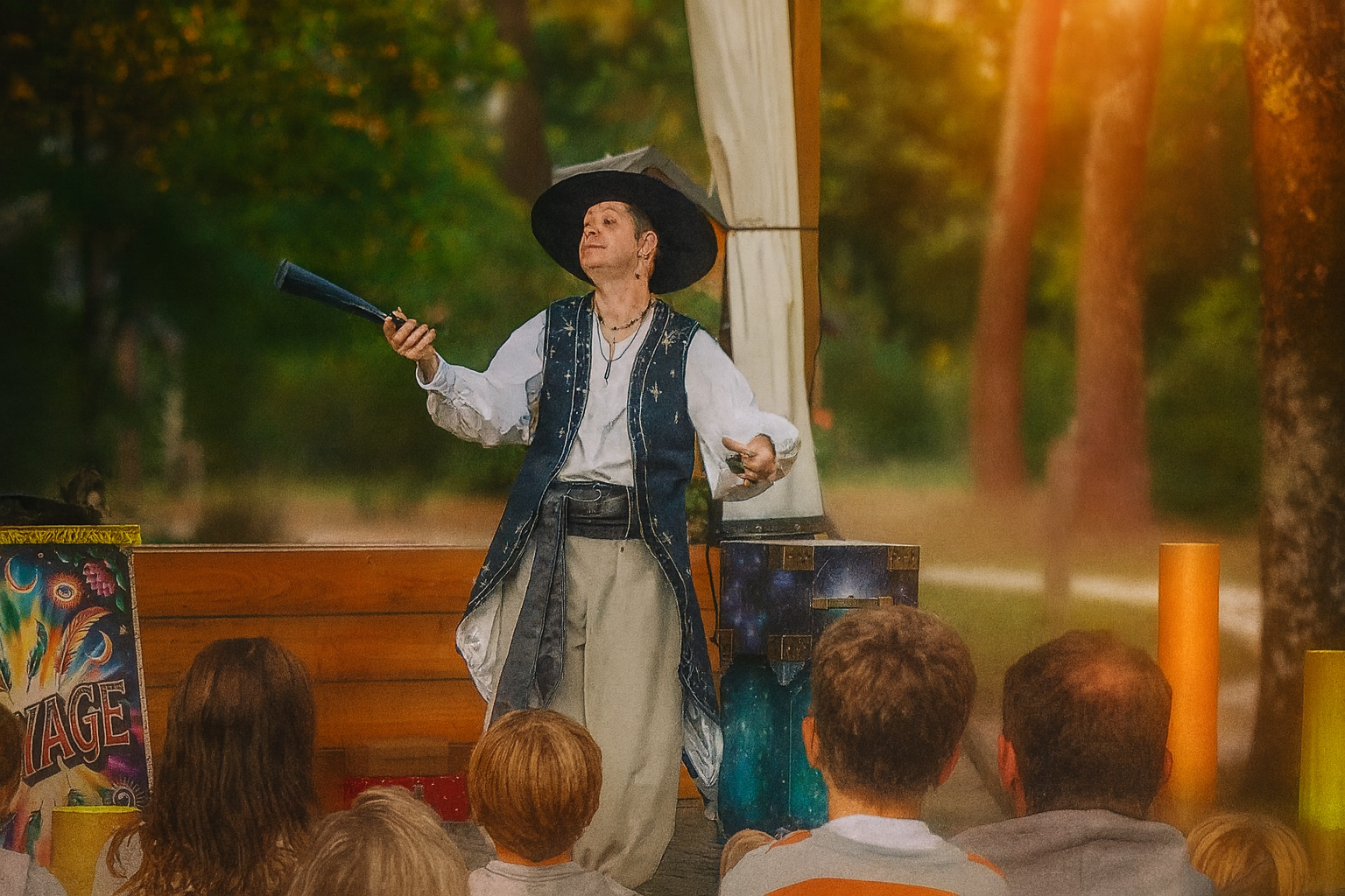 Avec son allure singulière et sa présence mystérieuse, Maximiliano Célestan incarne un voyageur du temps et de l’illusion. Il ne parle pas beaucoup, mais chaque geste raconte une histoire… Celle d’un explorateur des merveilles et des traditions magiques oubliées.